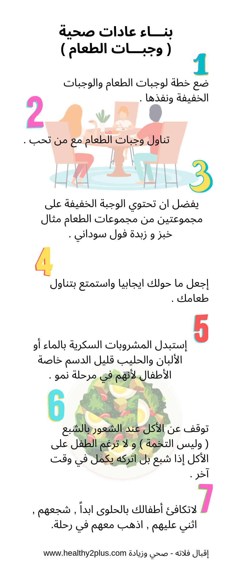 صممت انفوجرافيك خفيف ظريف ( أول مرة اسوي انفوجرافيك اعذروني على البساطة 😇 ) يتكلم عن بعض العادات الغذائية الصحية .. طبعا في كثير عادات صحية كثير كثير 😃