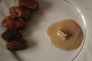 الفطور : 5 حبات تمر + 9 جرام طحينة سائلة & شاي المورينجا بدون سكر