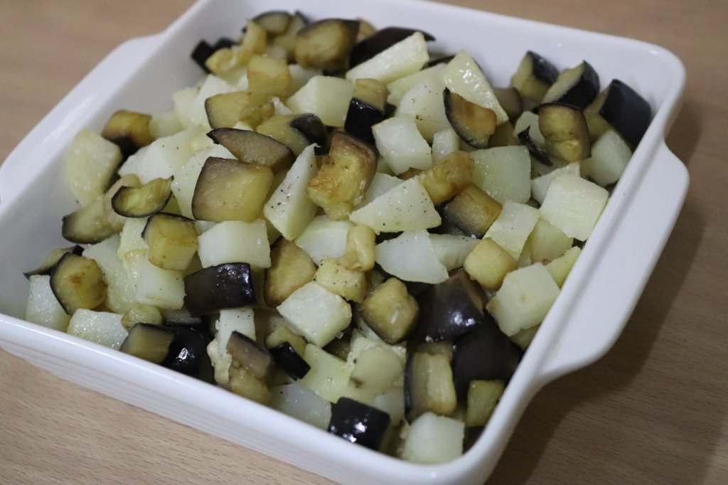 الغذاء : فتة باذنجان بالبطاطس و الدجاج 😋